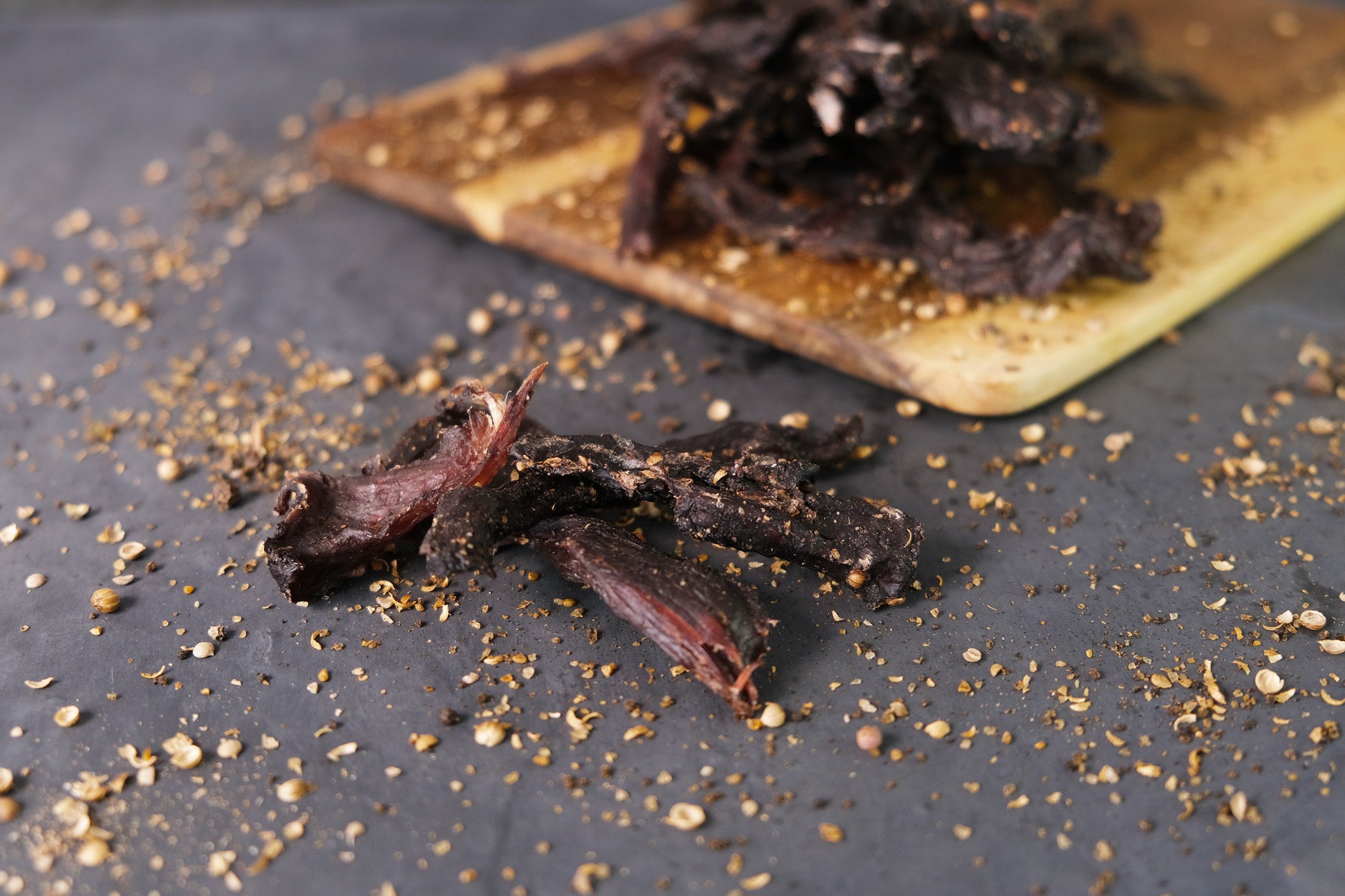 Cured and dried the traditional way, our beef biltong is soaked in a marinade of herbs, spices and a few other secret ingredients to give you that biltong satisfaction you crave! Our biltong is produced in a secure, fully-certified food production facility.