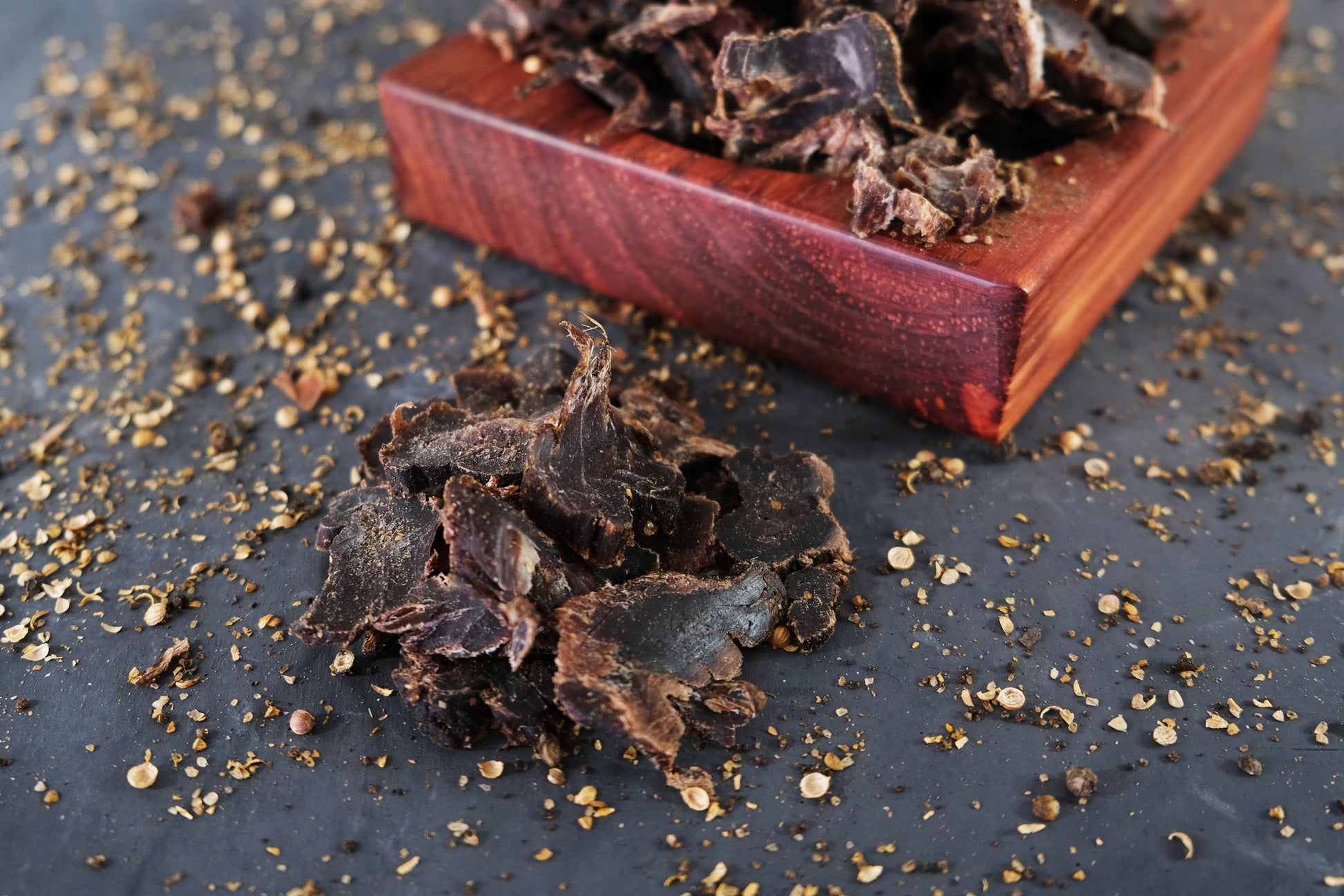 Cured and dried the traditional way, our eland biltong is soaked in a marinade of herbs, spices and a few other secret ingredients to give you that biltong satisfaction you crave! Our biltong is produced in a secure, fully-certified food production facility.